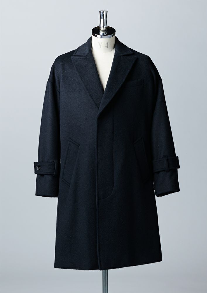 この丸みのあるシルエットが全体を中和し、武骨過ぎないモダンなコートに仕上げています。