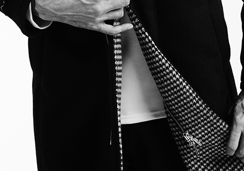 18AWからアップデートし続けているフーデッドコートです。大きなフード回りのシルエットをいかに美しく見せるかに拘りながら、フロントはAKMオリジナルのエクセラZIP仕様。腰は箱ポケットを採用し、後ウエストのアジャストベルトは排除し、表地の良さを一番に感じられるよう、シンプルに仕上げました。フード表裏、身返し、袖タブ裏を別布<千鳥格子>で切替、デザインしています。