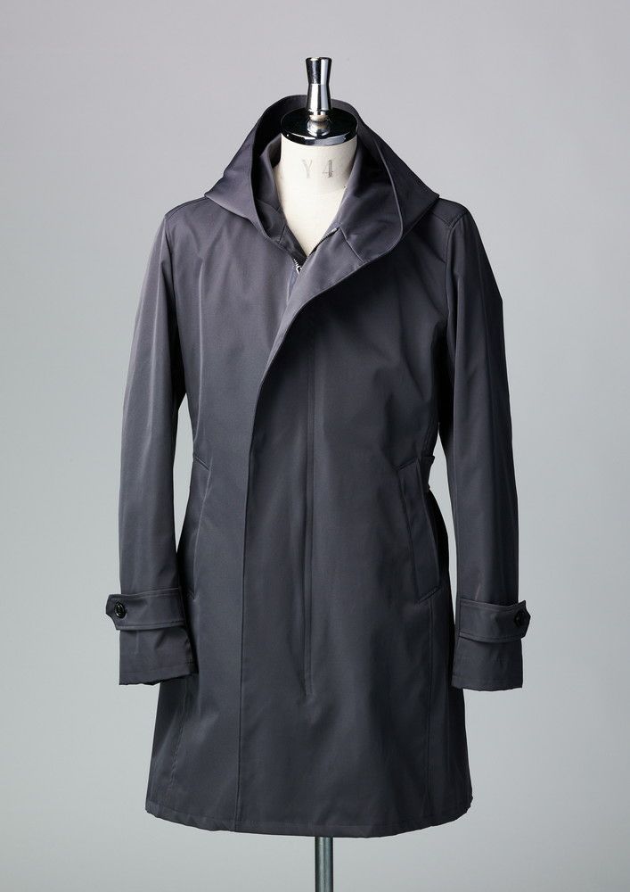 【 C078 /STRETCH TWILL WRAP HOODED COAT -GREY- 】