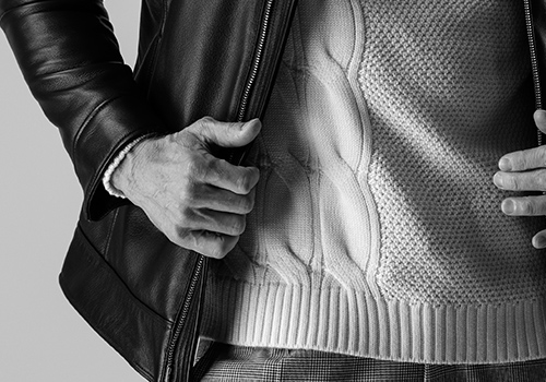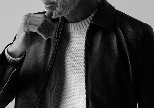 新型のシャツ衿付きのシングルライダースです。極力シンプルに品良く仕上げたライダースです。