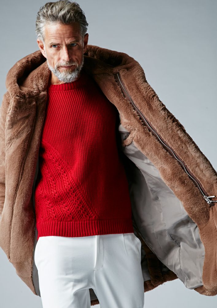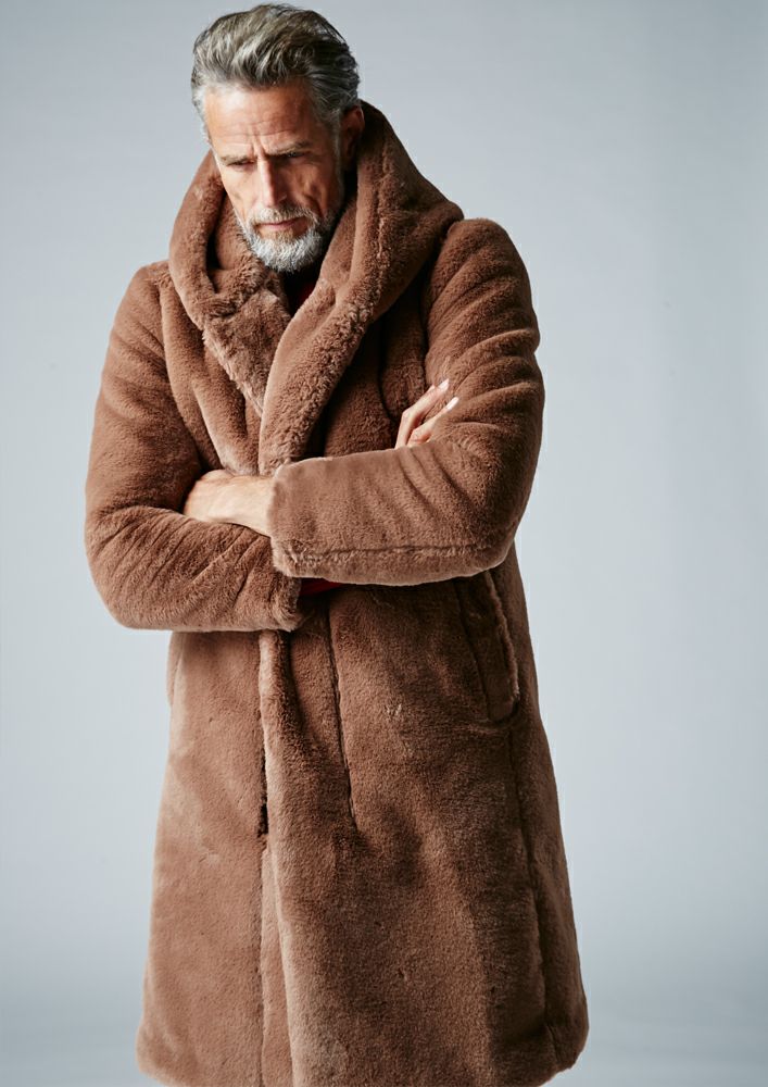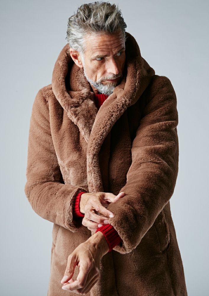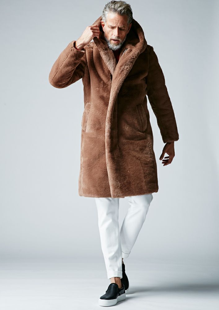 【AKM】ECO FUR WRAP HOODED -BROWN-