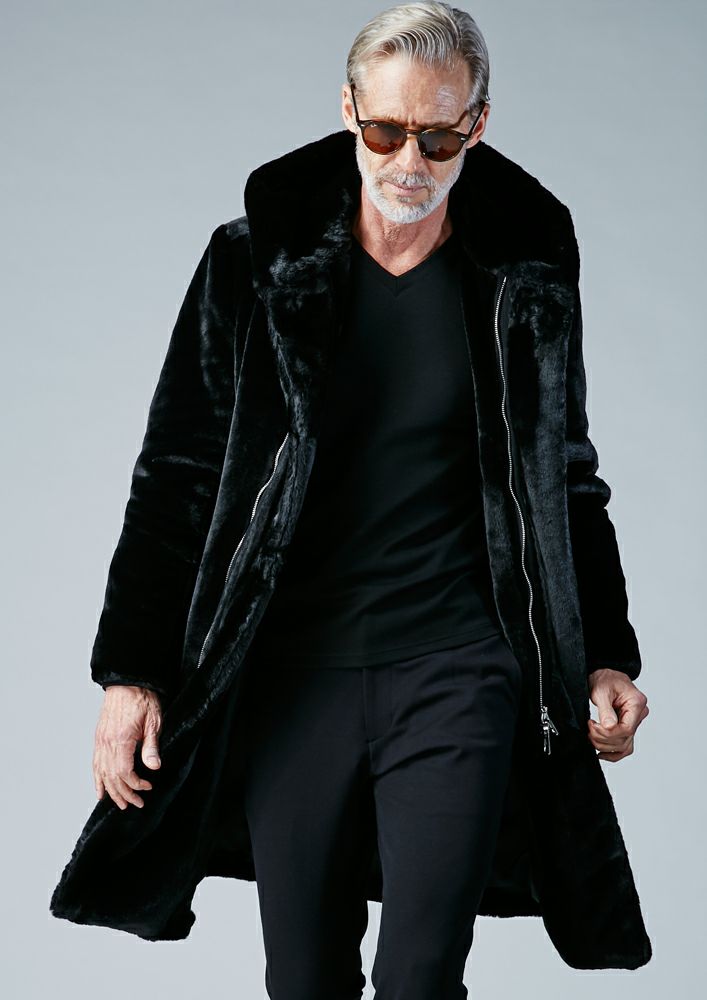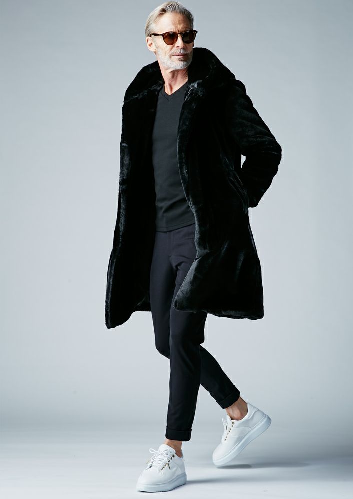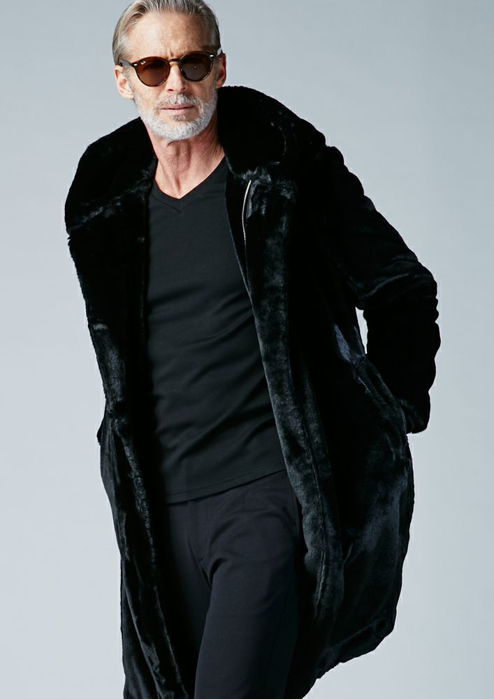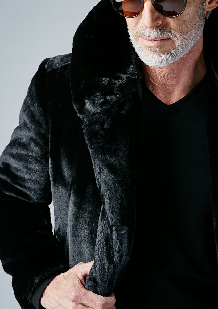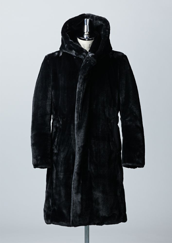 【AKM】ECO FUR WRAP HOODED -BLACK-