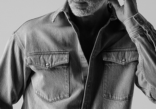 AKM デニムコレクションより新型のシャツアウターの登場です。肩幅、身巾、袖巾をたっぷりとゆとりあるビッグシルエットに仕上げています。ヘビーオンスの重厚なデニムを敢えてこのシャツに使用することで、カバーオール的なアウターとしての位置付けとしてご提案します。特徴的な大きめの胸ポケットが男らしく、加工もヒゲやクラッシュ、リペアなどをぜずに自然な色落ちによる美しい経年変化を再現しています。