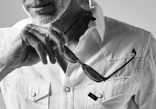 左胸ポケットのフラップ上にAKMピスネームをたたき付けることで商品を引き締めています。