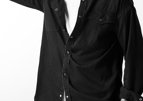 【 S148 / CTN271 / 5.5oz DENIM DROP SHOULDER DENIM SHIRTS -BLACK ONE WASH- 】