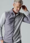 AKM定番のプレーンシャツ。 ドレスシャツを タイトフィッティングに直線的なディテールで構築したベーシックシャツ。