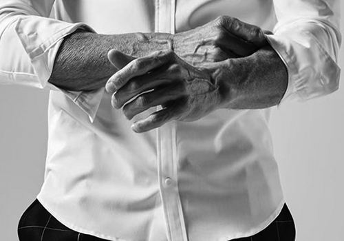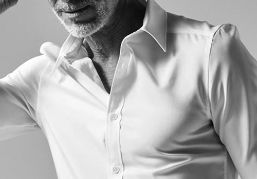 ドレスシャツを タイトフィッティングに直線的なディテールで構築したベーシックシャツ。