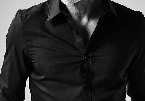 ドレスシャツを タイトフィッティングに直線的なディテールで構築したベーシックシャツ。
