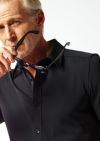 ドレスシャツを タイトフィッティングに直線的なディテールで構築したベーシックシャツ。