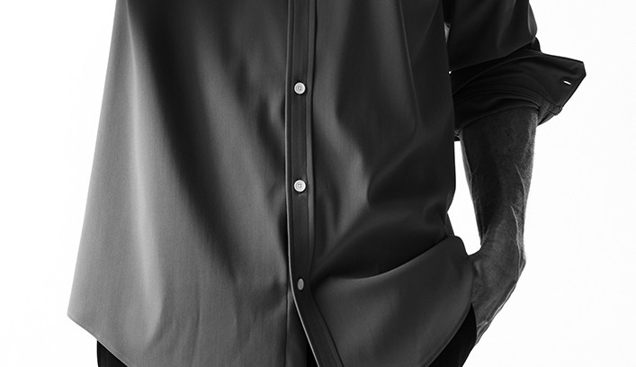 ドレスシャツをベースに、リラックス感漂う、オーバーサイズにし、直線的なディテールで構築したベーシックシャツです。
