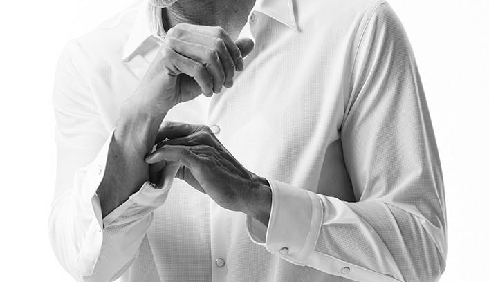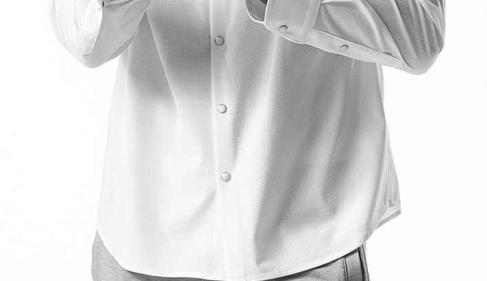 春夏向きのエアードッツ素材に着脱し易いスナップ釦を採用し、軽やかで清涼感溢れる装いを演出します。