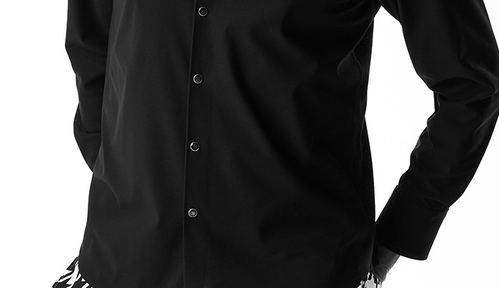 春夏向きのエアードッツ素材に着脱し易いスナップ釦を採用し、軽やかで清涼感溢れる装いを演出します。