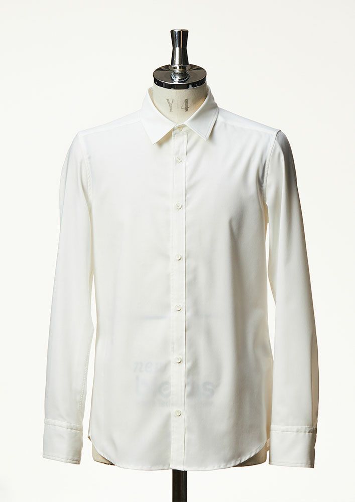 ドレスシャツを タイトフィッティングに直線的なディテールで構築したベーシックシャツ。