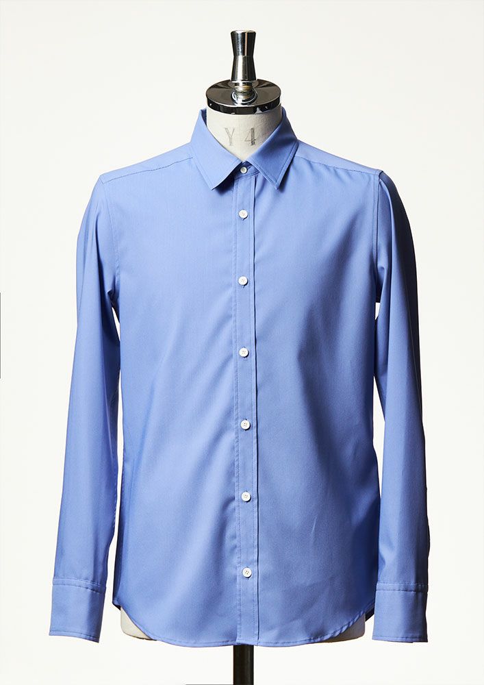 ドレスシャツを タイトフィッティングに直線的なディテールで構築したベーシックシャツ。