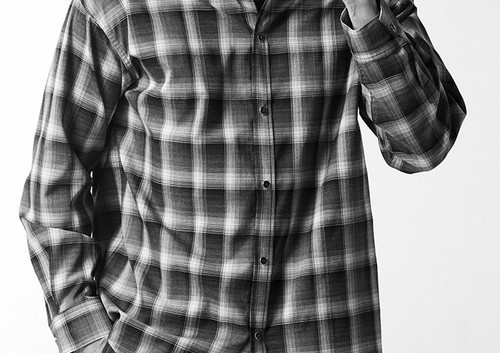 【 S145 / PER034 / SUMMER WOOL OMBRE CHECK DROP SHOULDER SHIRTS -BLACK/WHITE- 】