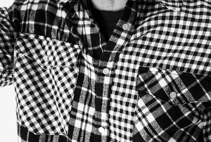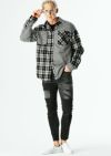 【 S152 / CTN277 / COTTON NEL CRAZY DROP SHOULDER CHECK SHIRTS -BLACK/WHITE- 】