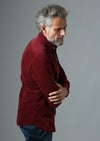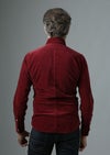 るように釦の間隔を調整するなどシンプルなアイテムゆえ、細部に拘ってパターンメイキングしています。釦は AKM ロゴ入りの本水牛シャツ釦を採用。