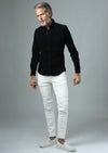 DETAIL:長袖のホリゾンタルカラーのシャツです。ネクタイももちろんありですが、ノータイの場合に上から二つ釦を開けた時に、首元がセクシーに見え