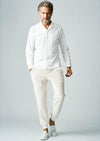 ように、「SPERANZA」の文字を同色チェーン刺繍し、アクセントを加えています。釦は AKM ロゴ入り本水牛シャツ釦を採用。