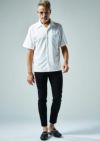 上品な雰囲気を表現しながらも、イージーケアなジャージ素材を表地に採用した胸ポケット月の半袖開襟シャツを発表します。 柔らかい肌触りの良さと軽さにより、真夏のプールサイドもしくは海に行く際に持って来いの清涼シャツです。 釦はAKMロゴ入り本水牛ボタンを採用しています。