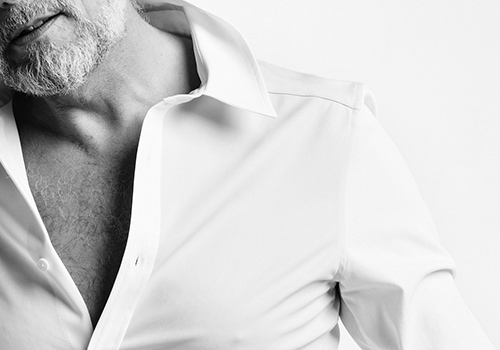 AKM定番のプレーンシャツ。 ドレスシャツを タイトフィッティングに直線的なディテールで構築したベーシックシャツ。衿はやや小ぶりのレギュラーカラーをご提案します。釦はAKMロゴ入り本水牛シャツ釦を採用。今季は無地5色、クレイジー仕様1色の計6色展開です。