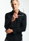 AKM定番のプレーンシャツ。 ドレスシャツを タイトフィッティングに直線的なディテールで構築したベーシックシャツ。衿はやや小ぶりのレギュラーカラーをご提案します。釦はAKMロゴ入り本水牛シャツ釦を採用。今季は無地5色、クレイジー仕様1色の計6色展開です。