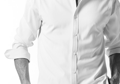 ドレスシャツを オーバーサイズに直線的なディテールで構築したベーシックシャツ。