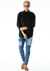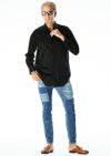 【 S150 / CNR010 / COTTON STRETCH SATEEN L/S BIG PLAIN -BLACK- 】