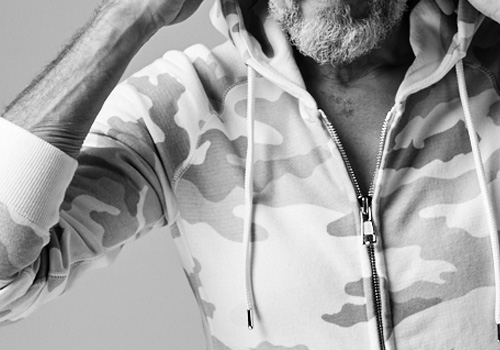 による切替で動きのある表情に仕上げています。今季は身巾、袖丈を見直し、ブラッシュアップしています。フロントZIPPERはAKMオリジナルエクセラで、8号から5号逆開へ変更しております。今季は無地3色、ホワイトカモ、そしてクレイジー配色2色の計6色展開です。からみのループ面を敢えて裏使いしていますので、サラッとした肌触りをお楽しみください。