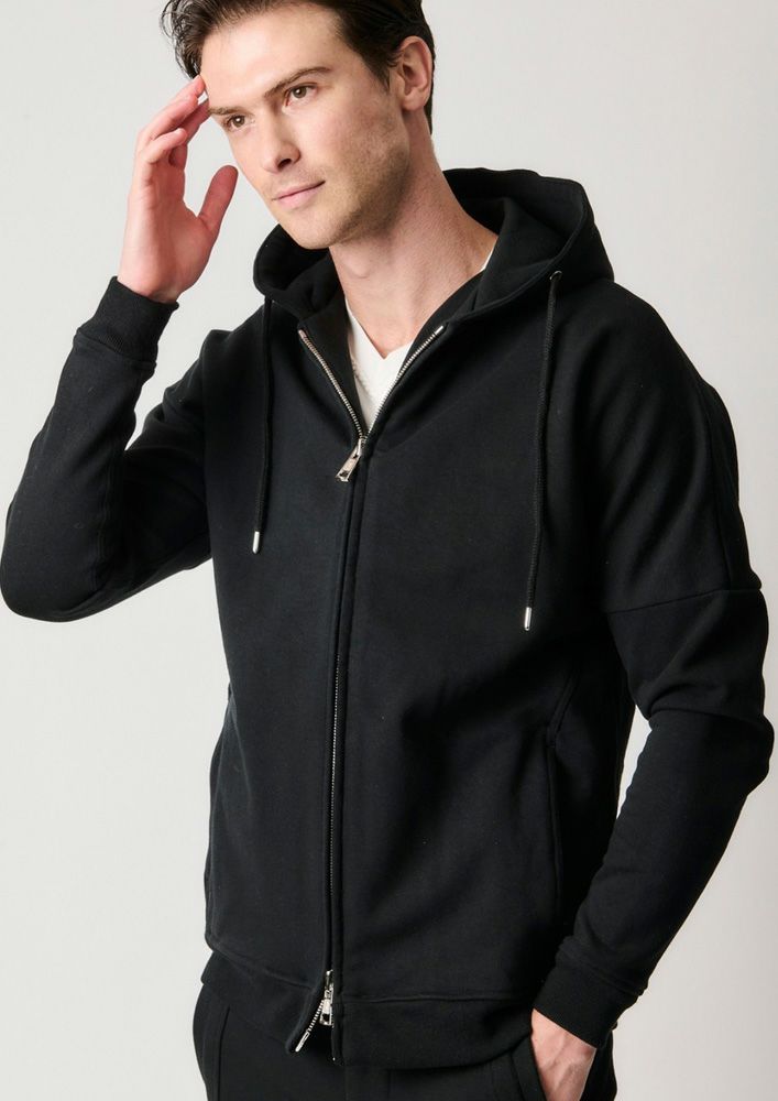【 B418 ORIGINAL STRETCH JERSEY SOLID DROP SHOULDER ZIP PARKA -BLACK- 】