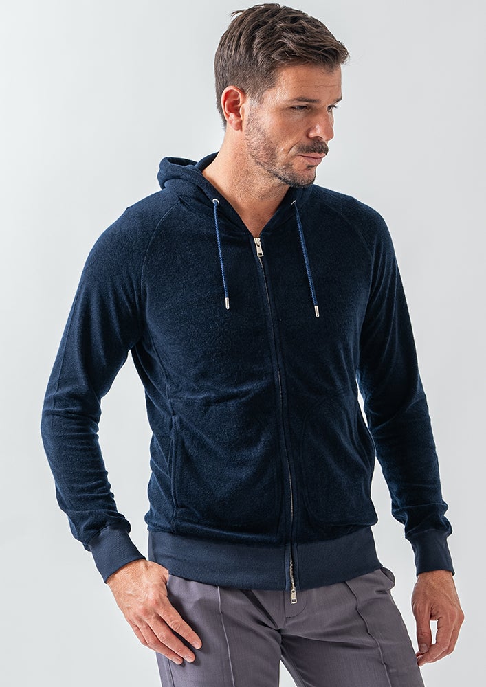 柔らかいだけでは終わらせず、パーカーとして美しく成立する表情と着用感へと整えています。