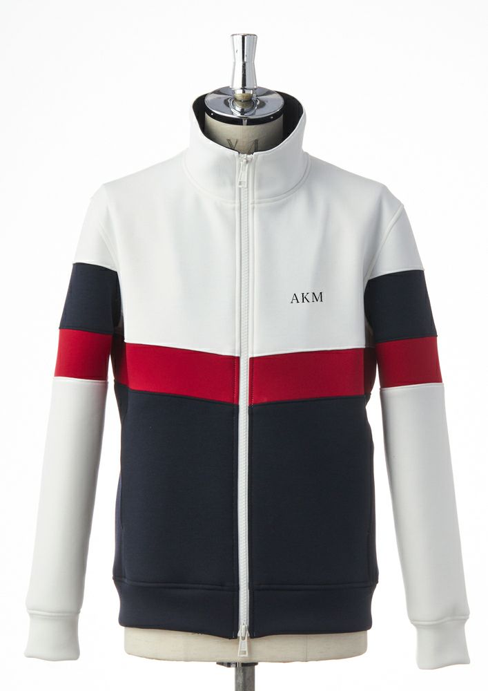 AKMお馴染みのスタンドトラック型にデザイン切替を入れて、3配色にまとめ上げた新作ブルゾンです。