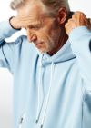 大きめのフード、ドロップショルダー、ボリュームのある身巾、また袖から脇、脇から裾へと続く切替ステッチが立体感を生み出します。