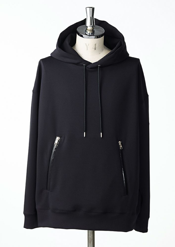 【 B479 / PET141 / AQUA SUITING JERSEY RELAX PULLOVER ZIP POCKET PARKA -BLACK- 】