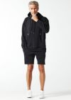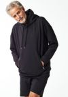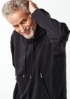 大きめのフード、ドロップショルダー、ボリュームのある身巾、また袖から脇、脇から裾へと続く切替ステッチが立体感を生み出します。