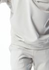 また、袖口、裾部分の切替は通常リブを使用しますが、ストレッチ性、キックバック性の高い表地共地にしミニマルに仕上げています。