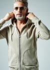 さらに今回から生地でのタンブラー加工を施し、仕上がり後の 縮率の誤差の低下も実現し、風合いもさらにソフト感とふっくら感が増しています。 今回はパイル面を裏に使用して、ふっくらしたパイルの柔らかさを肌面で感じられる仕上がりです。 さらに生地の状態で、顔料プリントにて""AKMオリジナルCAMO柄”をほどこしたものも展開しています。
