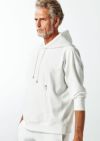大きめのフード、ドロップショルダー、ボリュームのある身巾、また袖から脇、脇から裾へと続く切替ステッチが立体感を生み出します。