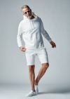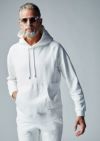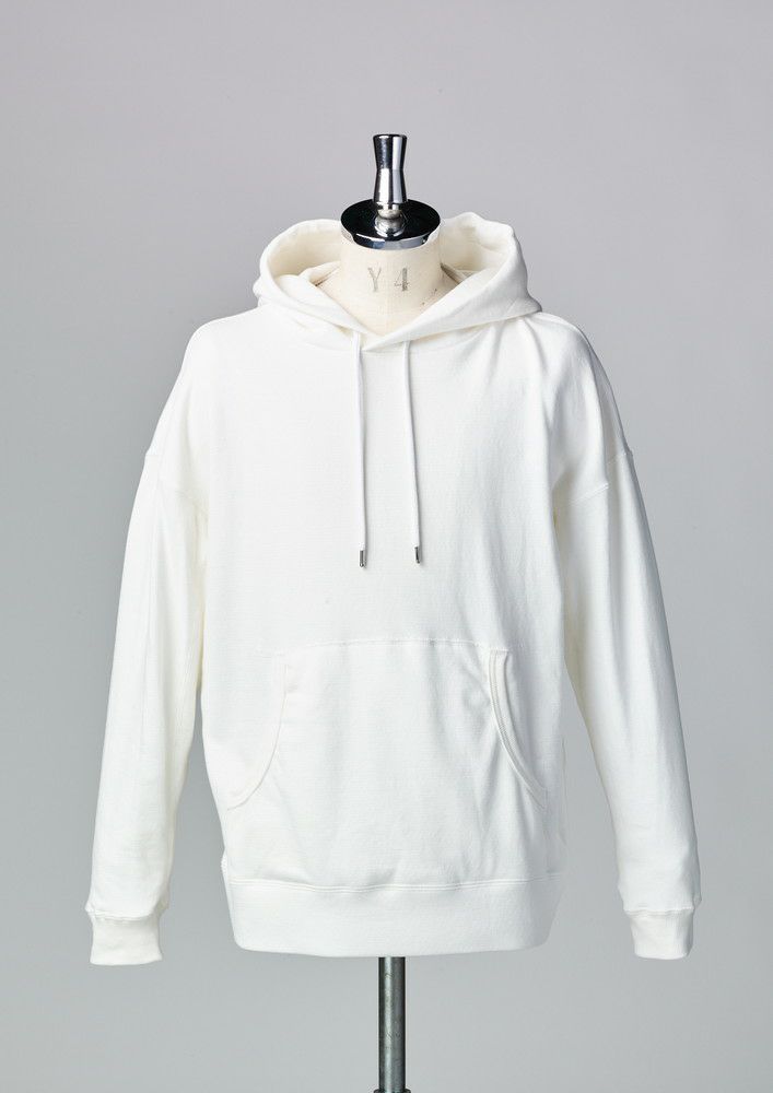 カンガルーポケットのプルオーバーパーカー、普遍的な定番アイテムを再構築しました。大きめのフード、ドロップショルダー、ボリュームのある身巾、また袖から脇、脇から裾へと続く切替ステッチが立体感を生み出します。裾は敢えて表地にし、袖口とポケット口のみリブで切替えています。今季は無地3色、ホワイトカモ、そしてクレイジー配色2色の計6色展開です。からみのループ面を敢えて裏使いしていますので、サラッとした肌触りをお楽しみください。