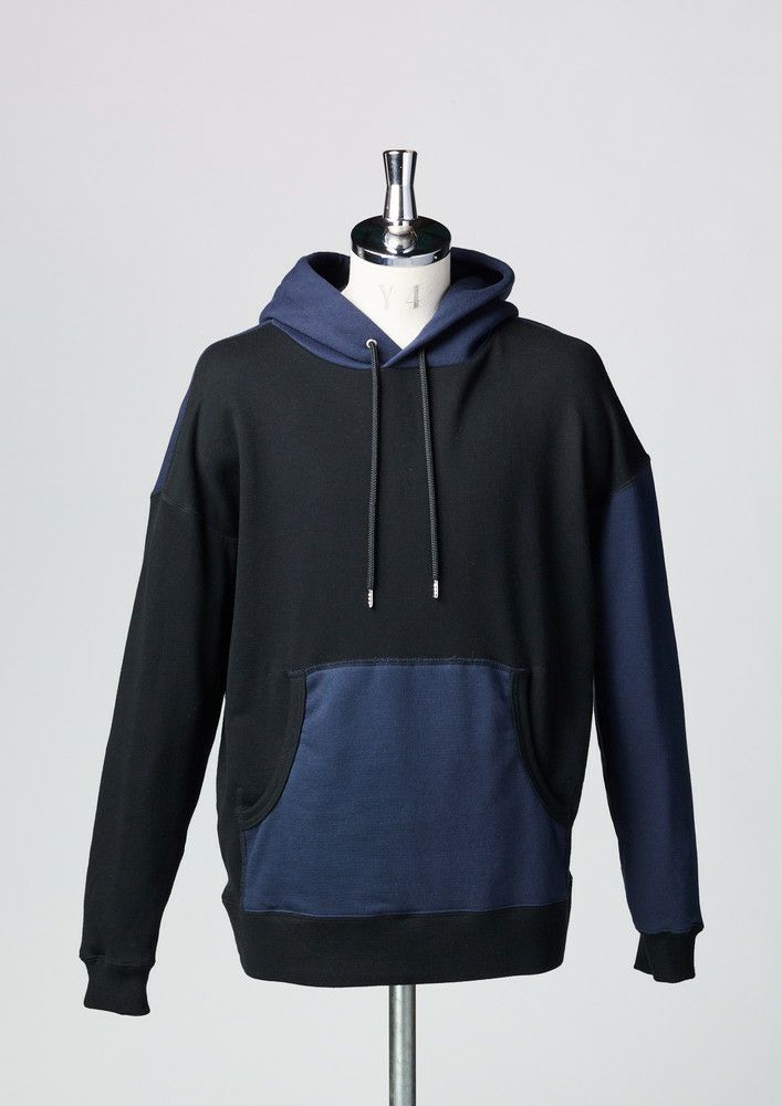 【 B421 / ORIGINAL KARAMI JERSEY BACK FABRIC PULLOVER PARKA -BLACK/NAVY- 】