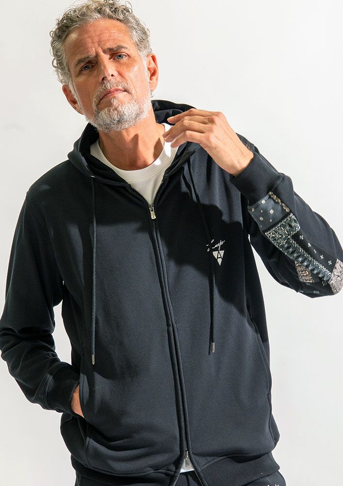 【 RB017 / TIL011 / DRY MASTER PONTI EASY ZIP HOODED -BLACK/PAILEY- 】