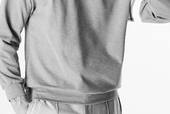 【 B489 / ALR029 / DUAL WARM BARE PONTI LINE DROP SHOULDER CREW-GRAY- 】