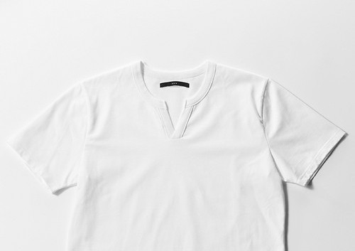【 T250 / CTN269 / LONG STAPLE TENJIKU S/S KEY NECK -WHITE- 】