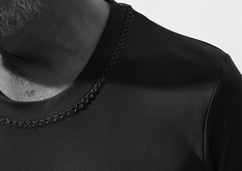 素材感とそこに生気を吹き込むべく職人の手による装飾リメイクは単なるTシャツをあらゆる角度から捉え、再構築しています。