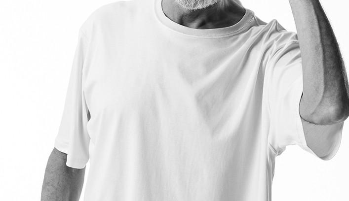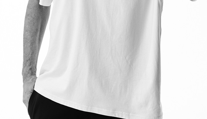 AKM定番の半袖クルーネックTシャツをベースに、袖は五分丈、サイズ感をビッグシルエットにアレンジしています。
