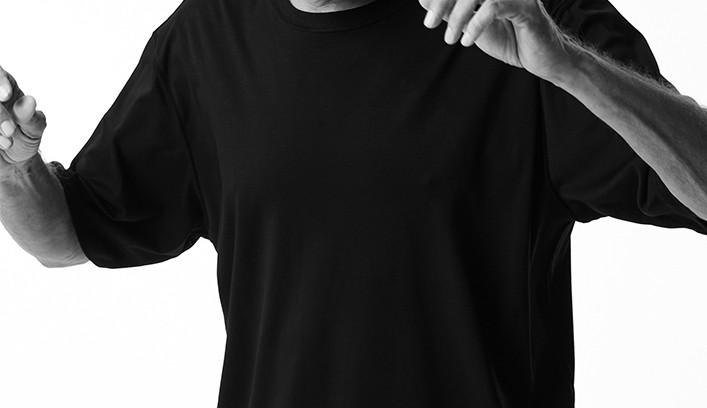 AKM定番の半袖クルーネックTシャツをベースに、袖は五分丈、サイズ感をビッグシルエットにアレンジしています。