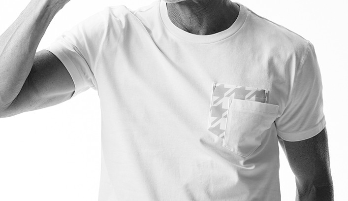AKM定番の半袖クルーネックTシャツをベースに、胸ポケットを二枚重ねしたデザイン性の高いTシャツです。