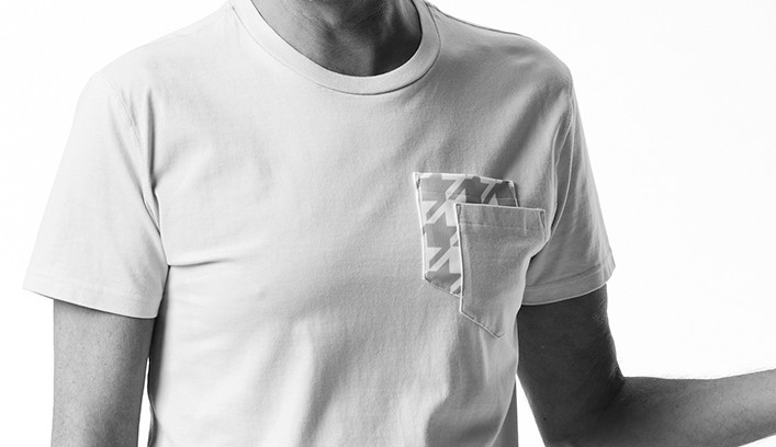 AKM定番の半袖クルーネックTシャツをベースに、胸ポケットを二枚重ねしたデザイン性の高いTシャツです。
