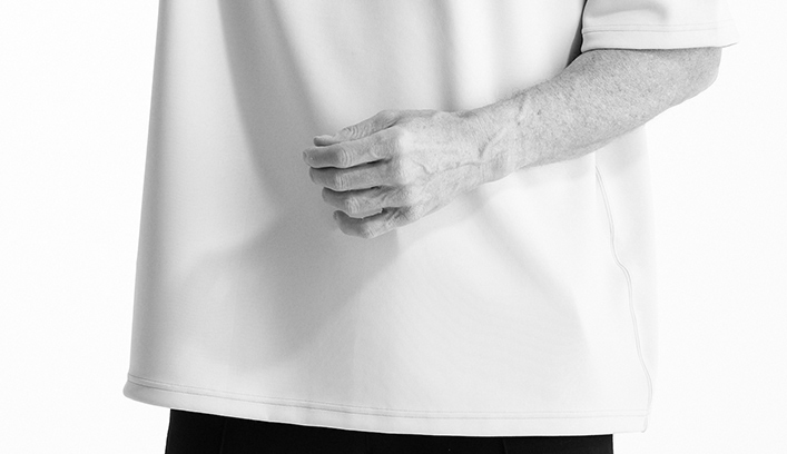 AKM定番の半袖クルーネックTシャツをベースにサイズ感をビッグシルエットにアレンジしています。