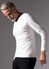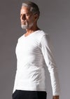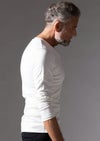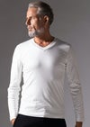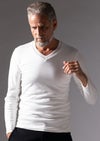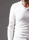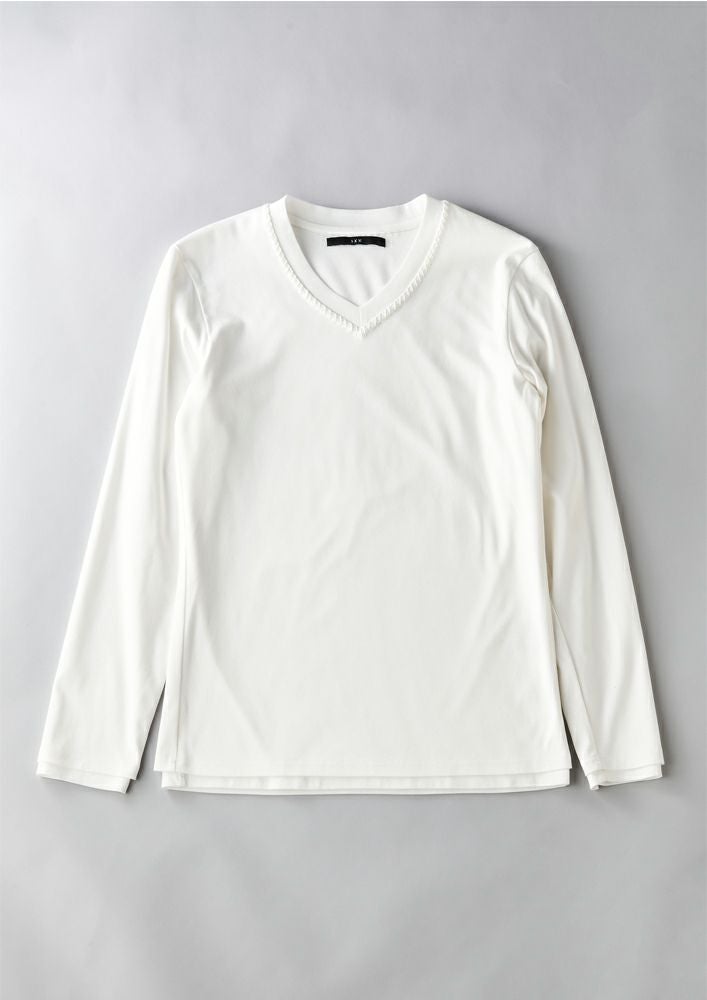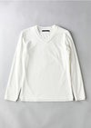 【T206 / SMOOTH COTTON L/S HAND STITCH V-NECK -WHITE-】